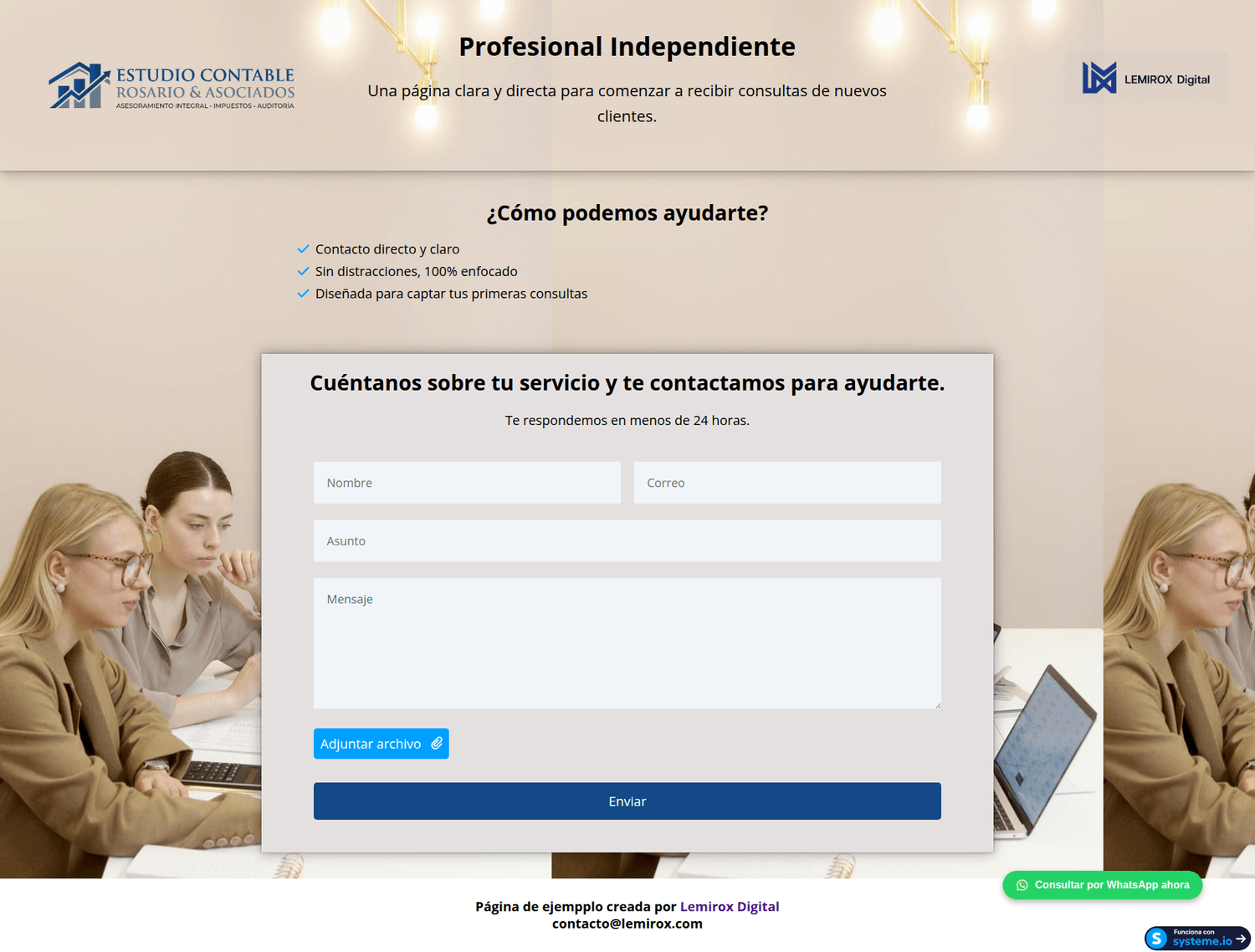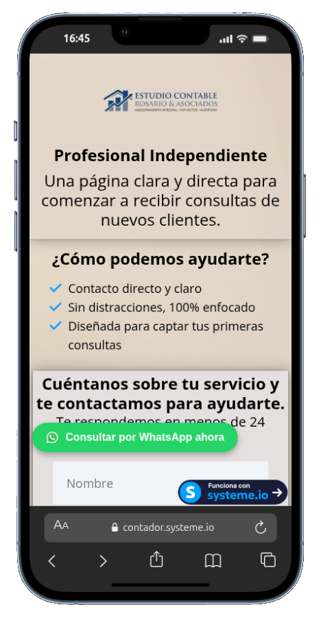 Soluciones simples para profesionales que quieren recibir consultas sin depender de redes sociales.